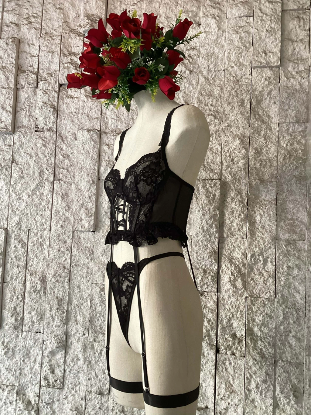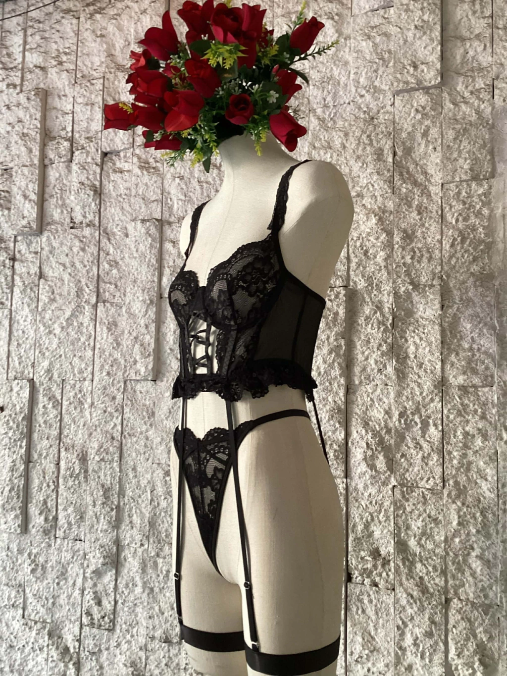 -BRA DE ENCAJE TIPO CORSET, CON VARILLA Y LIGUERO